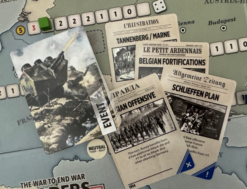 conditions. Most of the Event Cards do things like allow for additional Offensives that turn at no cost, add a +1 DRM to Offensive rolls, or make Offensives cause more losses (but at a cost as that Offensive will cause you to lose troops as well) and the like. They are not game breaking but do inject some very interesting bonuses into the mix that will cause you to think about your plan for the use of of your Resource Points for that turn.