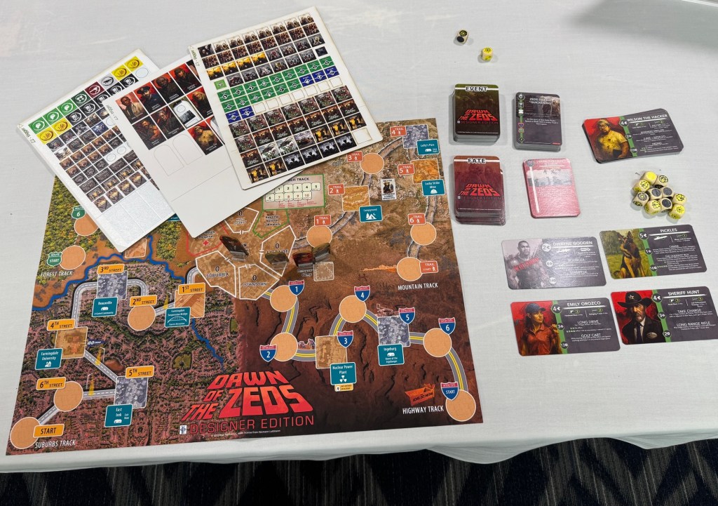 We then sat down with Steve Jones (aka Steve Panther or Steve Blue as we affectionately refer to him) with Blue Panther Games and did a summary of all of their upcoming projects and fakes incurring getting an early look at Dawn of the Zeds Designer Edition designed by Hermann Luttmann.