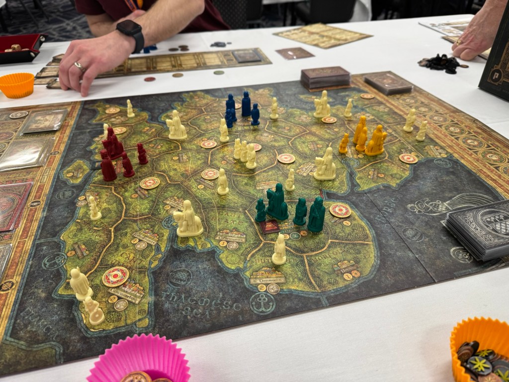 The 2nd game of the day was Bretwalda from PHALANX. This is such a beautiful game but is also a very good design in the area control/dudes on a map realm.