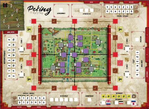 Today, I’m presenting one of my latest designs: Peking: 55 Days of Fury. It’s a 1-2 player game where one side commands the Chinese forces and the other leads the International Legations (an alliance of 8 nations). The game spans 6 turns—representing roughly 9 days each—where players fight to secure the most victory points by the end of the siege.