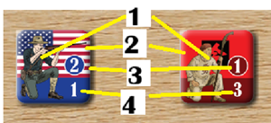 3) Combat Strength – Ranging from 1 to 3. During combat, the Combat Strength of all MU on each side are added together.