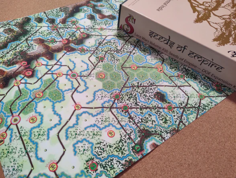 Red Sash Games have a reputation for very large, very long playing games that are focused on interesting historical events. This month, they announced their newest offering with their printing partner Blue Panther and it is an expansion to their Seeds of Empire game focused on the wars in South & Central India during the 1730’s through the 1750’s. The game is called Dreams of Empire Expansion Kit – Seeds of Empire: The Wars of South & Central India, 1730’s-1750’s and really looks to be pretty interesting.