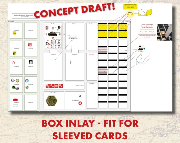 These changes were made to improve both storage and usability for players. Many players prefer to sleeve their cards to protect them during repeated play, particularly in games with frequent handling such as card-driven tactical systems. The redesigned inlay ensures that sleeved cards fit comfortably inside the box without bending or compressing them, allowing players to keep their components protected while still maintaining a compact storage solution.