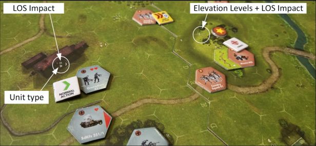 Many players were concerned that such symbols might reduce immersion. Because we take those concerns seriously, we decided on a more subtle compromise. Elevation levels and some terrain rules are now represented with discreet graphical indicators, allowing players to understand the battlefield layout more quickly without constantly consulting the rulebook.