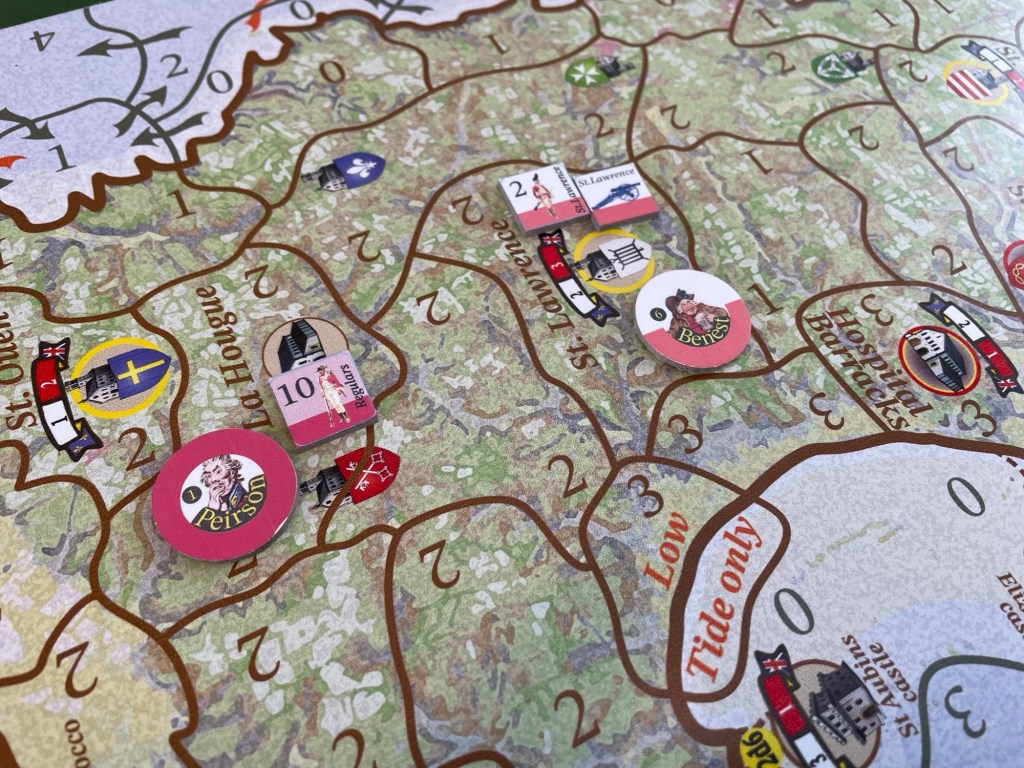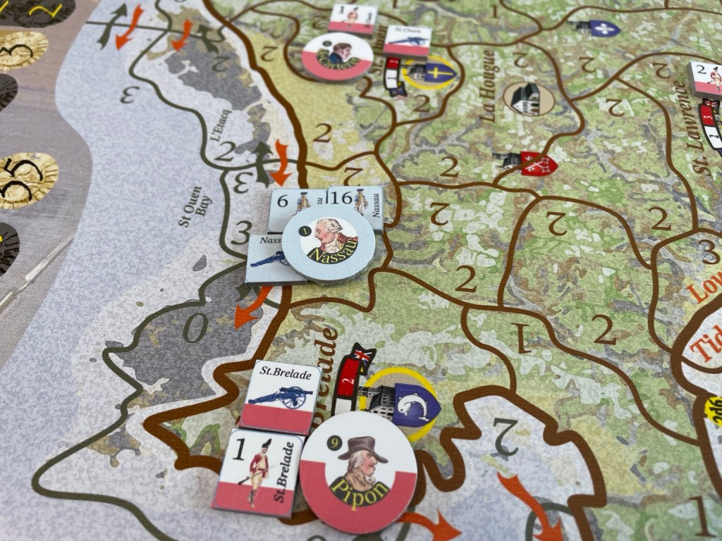 The big change for Jersey is that there are no sieges. The time span of the campaign is tiny where compared to other games in the system. The actual 1781 campaign lasted less than 1 day; and had 1779 resulted in a landing, 1-2 days would have brought the campaign to a conclusion. That doesn’t mean there are not castles & forts in the game however – we just have a different way of them possibly being captured!