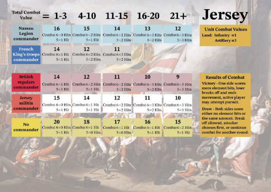 Peregrine: It is pretty standard for the Limits of Glory System with different troop types (British Regulars, Jersey Militia, Nassau Legion & French Regulars) being given different abilities and success ratings.